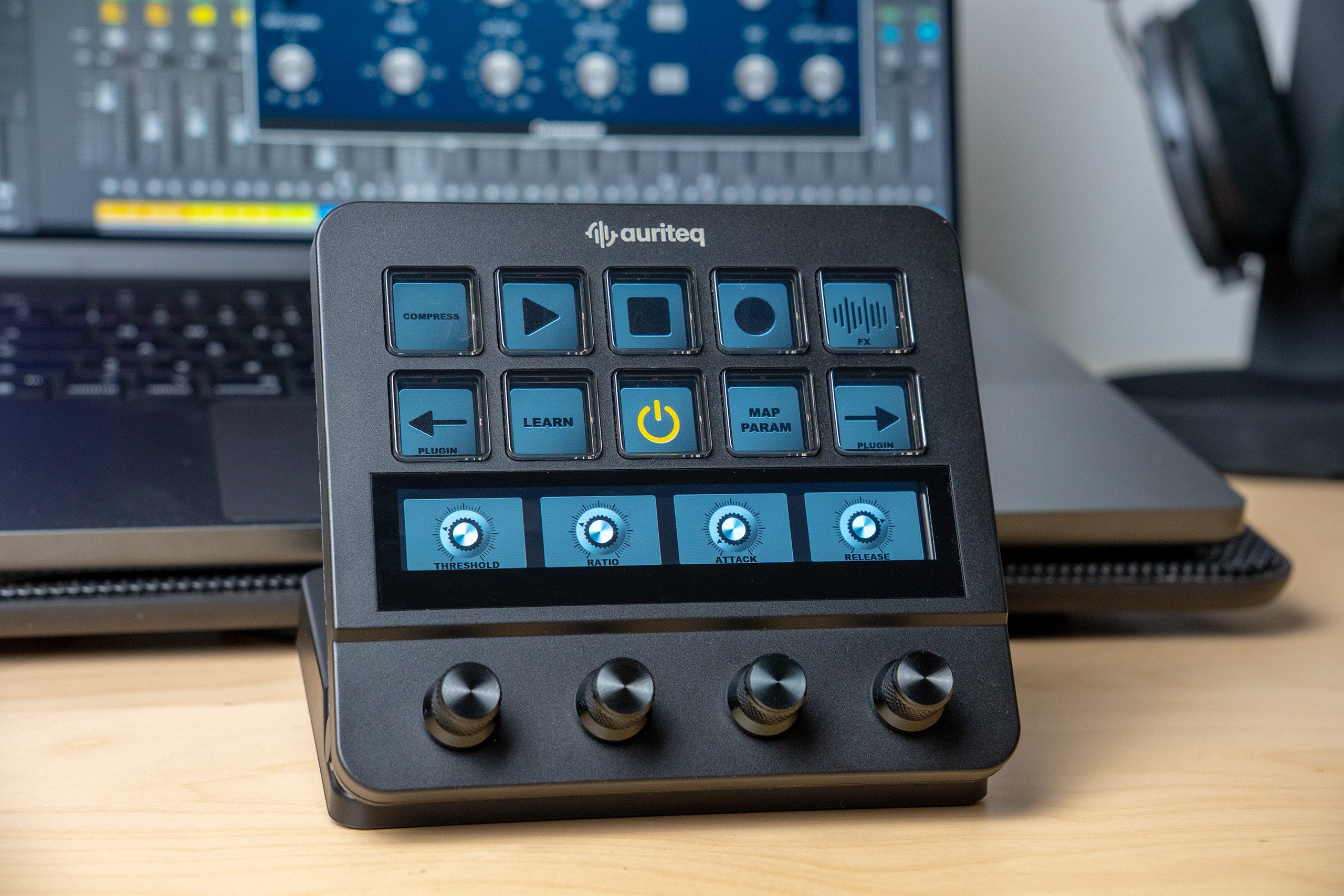 The Auriteq Flow is more than a controller — it’s the new center of your studio. It replaces your mouse, keyboard, and screen, bringing your entire workflow into one intuitive surface. See the state of every track and plugin in real time, insert any plugin with a single press, and control every parameter with precision and focus.