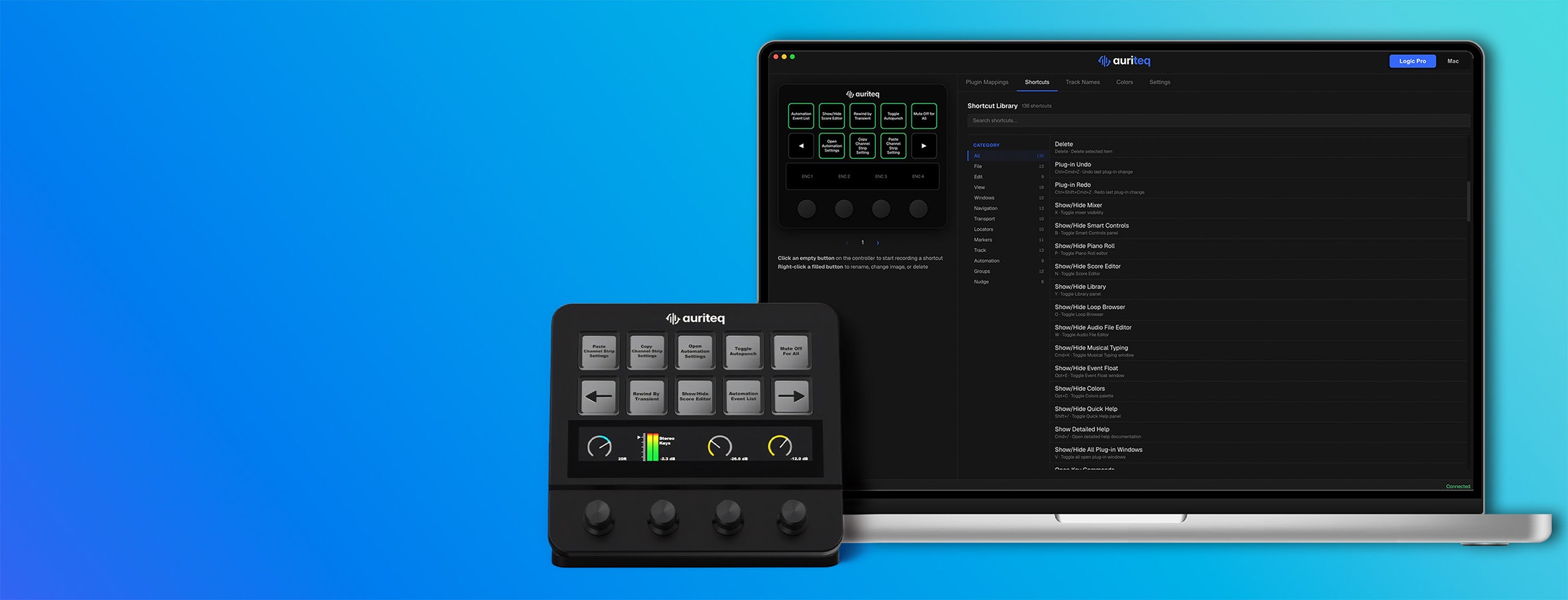 The Auriteq Flow lets you control the parameters of any plugin - effects, instruments, and built-in devices - in Ableton Live, Logic Pro, and FL Studio natively.